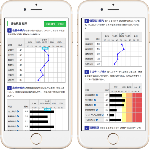 数万人の社会人データをもとに性格・意欲・価値観の傾向などをグラフ化してくれます。